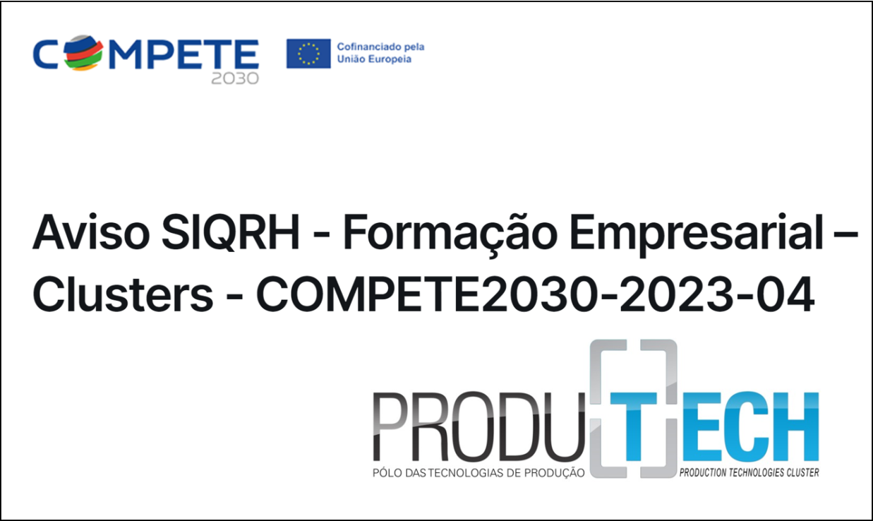 Foi publicado recentemente o aviso com o código COMPETE2030-2023-4 do Portugal 2030 com a designação SIQRH - Formação empresarial individual clusters que consiste no apoio para Formação de ativos – empresários, gestores e trabalhadores – das empresas inseridas em Clusters de Competitividade, nos quais se insere o Cluster PRODUTECH, estando por isso especialmente concebido para empresas diretamente relacionadas com o Cluster das Tecnologias de Produção ou com atividade relevante a montante ou a jusante.