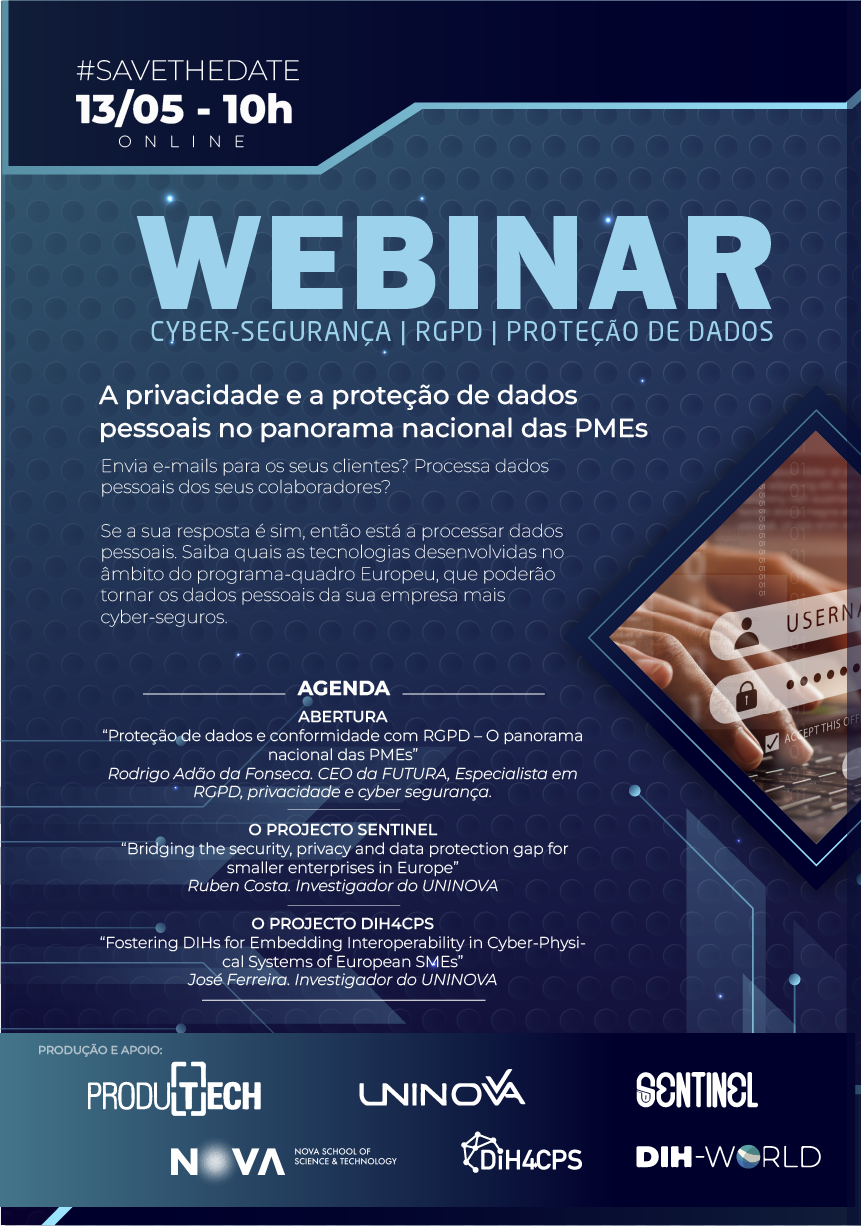 Neste evento foram apresentados alguns resultados de vários projetos em curso relacionados com a Cybersegurança, RGPD e Proteção de dados, nomeadamente o projeto DIH4CPS - Fostering DIHs for Embedding Interoperability in Cyber-Physical Systems of European SMEs, coordenado pela UNINOVA e que a PRODUTECH é parceira.