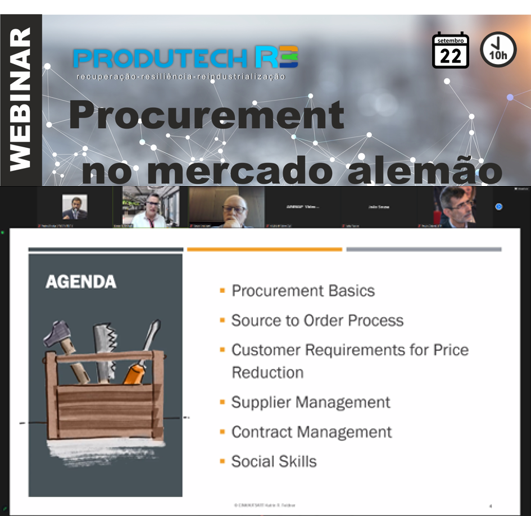 A Agenda Mobilizadora da Fileira das Tecnologías de Produção para a Reindustrialização – PRODUTECH R3, no âmbito do WorkPackage de Apoio à Internacionalização das empresas da Fileira das Tecnologias de Produção, liderado pela PRODUTECH e a AIMMAP, organizou no passado dia 22 de setembro um webinar de “Procurement no mercado alemão”.