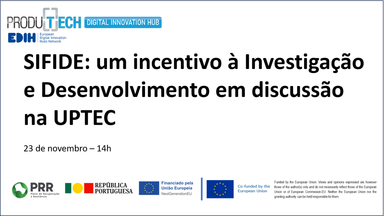 A UPTEC – Parque de Ciência e Tecnologia da Universidade do Porto, parceiro do PRODUTECH DIH, vai promover uma sessão de esclarecimento sobre o SIFIDE, um mecanismo um que visa aumentar a competitividade das empresas apoiando o seu esforço em Investigação & Desenvolvimento através da dedução à coleta do IRC de uma percentagem das respetivas despesas de I&D.