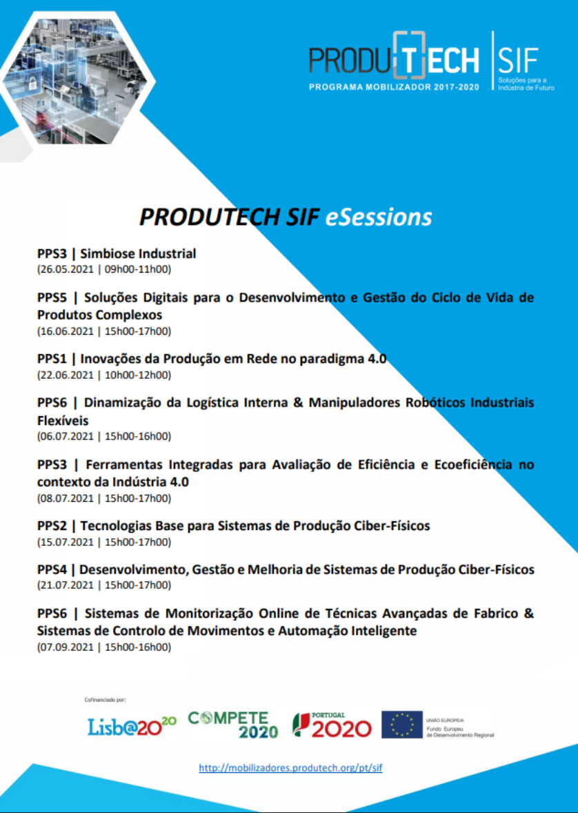 O projeto Mobilizador PRODUTECH SIF – Soluções para a Indústria do Futuro está a organizar um conjunto de PRODUTECH SIF eSessions para a apresentação de resultados finais do projeto. A próxima sessão é já no dia 16 de junho pelas 15:00h.