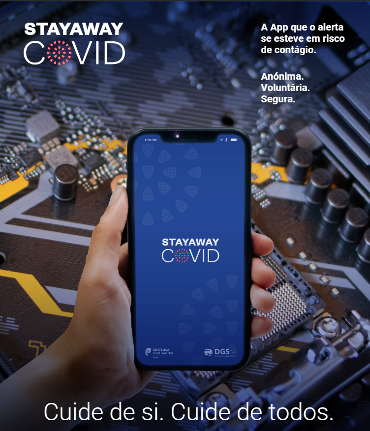 A STAYAWAY COVID é uma aplicação que pretende auxiliar o controlo de cadeias de transmissão, através de alertas de risco de contágio decorrentes da permanência durante mais do que 15 minutos e a menos de 2 metros de distância de pessoas a quem entretanto foi diagnosticado a COVID-19.